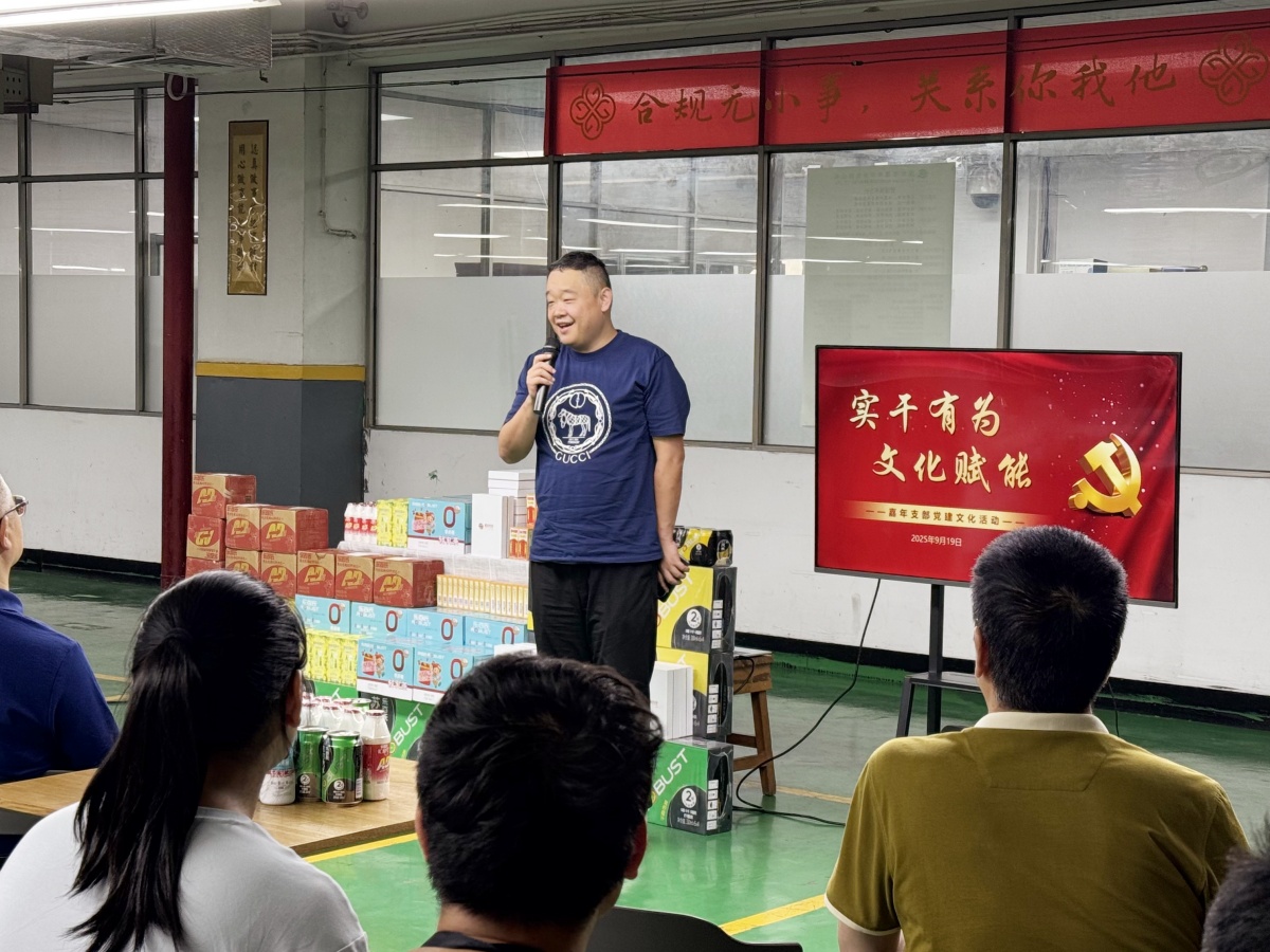 2025年9月19日,由盈投科技集团党委、企业文化领导小组主办,嘉年党支部承办的“实干有为,文化赋能”党建主题活动在嘉年生产园区成功举行。活动通过慰问关怀、文化展示、互动竞答及基层调研等多种形式,推动企业文化与经营实践深度融合,进一步夯实“六大工程”落地根基,为企业高质量发展注入文化动力。